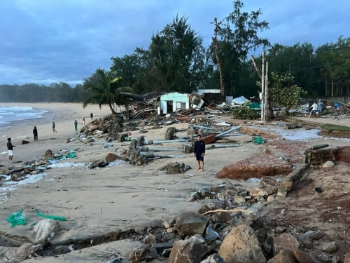 Ảnh hưởng bão số 13 Kalmaegi khiến triều cường tại Quảng Ngãi dâng cao "tấn công" hàng ngàn nhà dân Quảng Ngãi gây thiệt hại nặng nề.