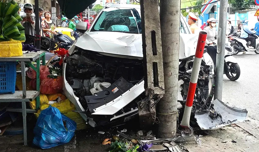 Ô tô tông xe máy rồi lao vào sạp trái cây tại Đà Nẵng làm hai người bị thương, giao thông ùn ứ trong giờ cao điểm buổi sáng.