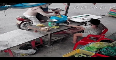 Thấy chiếc điện thoại đầu bếp để quên ở bàn bên cạnh, người đàn ông thản nhiên tiến lại gần rồi cầm nhét vào túi quần.