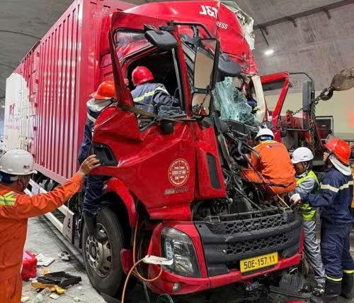 Theo thông tin ban đầu, sáng nay vào lúc khoảng 8h 40 phút, 3 phương tiện gồm ô tô con BKS 38A-685.xx, xe tải 50E-157.xx và xe đầu kéo 50H-123.xx va chạm giao thông tại khu vực trong hầm Đèo Bụt.