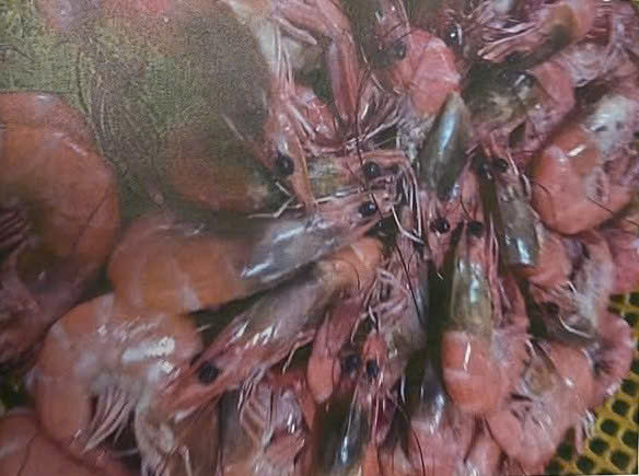 Hình ảnh tôm được cho là bị ươn, luộc lên bị đen đầu mà người tố cáo cung cấp. |