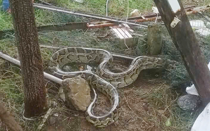 Trước đó, vào chiều 16-10, người dân phát hiện một con trăn đất nặng khoảng 15 kg, dài gần 3 m, bò lạc vào khu dân cư Thành Vinh, số 48 Suối Đá 3.