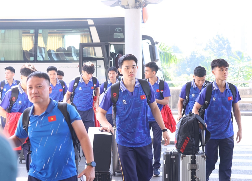 Các tuyển thủ U22 Việt Nam lên đường sang Thái Lan dự SEA Games 33. Ảnh: ĐÌNH BẮC |