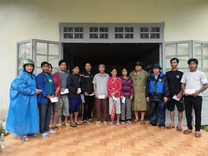 Lãnh đạo xã Trà Đốc thăm hỏi, tặng quà cho các hộ dân. |