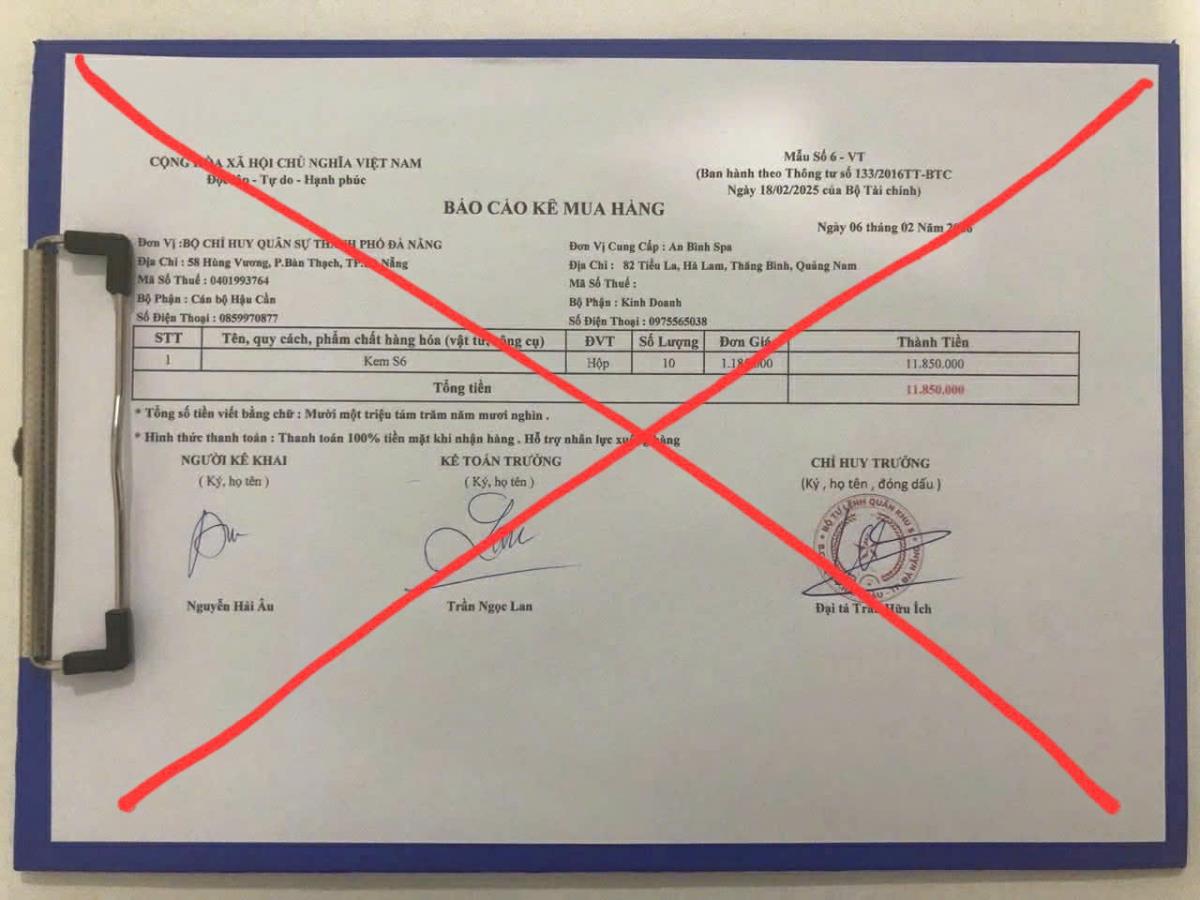 Trước sự việc trên, ngày 7-2, Bộ CHQS thành phố Đà Nẵng khẳng định: Đây là văn bản hoàn toàn giả mạo, không do Bộ CHQS thành phố ban hành, không đúng thể thức văn bản quân sự, không đúng quy trình quản lý, cấp phép và không có giá trị pháp lý. Đồng thời, nội dung, hình thức trình bày, con dấu và chữ ký trong văn bản này không trùng khớp với bất kỳ mẫu biểu, hồ sơ lưu trữ chính thức nào của đơn vị.
