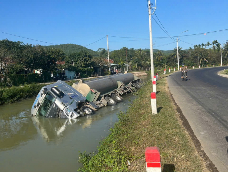 Chiếc xe tải này bất ngờ lao xuống lòng kênh thủy nông chính Bắc trong hệ thống thủy nông Đồng Cam. Rất may là sau khi xảy ra tai nạn, tài xế đã kịp thoát ra ngoài, trong bồn xe không có dầu. Thông tin ban đầu cho biết, nguyên nhân xảy ra tai nạn là do tài xế… ngủ gật.
