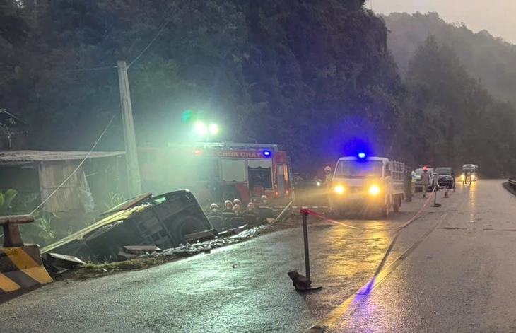 Thời điểm xảy ra tai nạn trên xe có khoảng 18 người (14 hành khách, 2 lái xe, 2 phụ xe). Ô tô là loại xe khách 36 chỗ, hư hỏng.