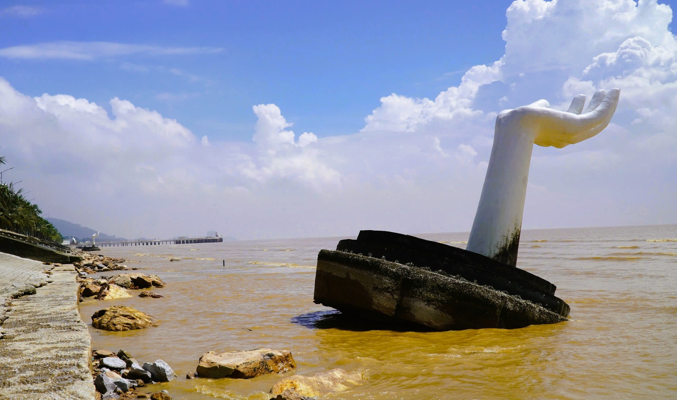 Đặc biệt, 5 bàn tay "khổng lồ" này có chân đế rất lớn, vào những ngày hè, khi nước biển dâng cao lên sát bờ kè làm cho những chân đế bằng bê-tông bị chìm sâu trong nước khiến người tắm không biết sẽ va vào, tiềm ẩn nguy hiểm.
