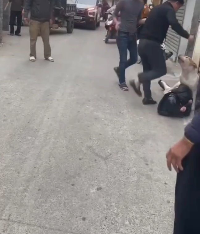 Chưa dừng lại ở đó, con chó còn tiếp tục lao tới, nhảy chồm lên, cắn vào mặt và chân một phụ nữ khác mặc áo phao màu đen. Dù một số người đàn ông xung quanh đã can ngăn và xua đuổi, con chó vẫn không chịu rời đi mà còn cắn vào chân người phụ nữ, khiến nạn nhân kêu cứu thảm thiết. Sự việc chỉ chấm dứt khi có khoảng 4 người khác chạy tới đánh đuổi, kéo và bế nạn nhân ra khỏi khu vực nguy hiểm.