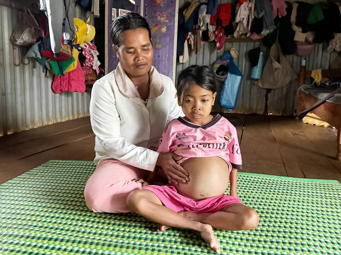 Hiện 12 tuổi, Đánh chỉ cao khoảng 1,4m và nặng vỏn vẹn 15kg. Mỗi ngày, em phải chịu những cơn đau hành hạ, cơ thể gầy guộc, bụng to khiến việc đi lại rất khó khăn. Những hôm trái gió trở trời, em sốt suốt đêm. Dù bệnh tật đeo bám, Đánh vẫn cố gắng đến trường. Gia đình Đánh thuộc diện hộ nghèo, không có đất sản xuất, chỉ sống nhờ vào công việc làm thuê bấp bênh. Từ khi em phát bệnh, cha mẹ phải thay nhau túc trực chăm con nên thu nhập càng eo hẹp. Mỗi tháng, Đánh phải nhập viện 3 lần, chi phí mỗi lần 5-6 triệu đồng. Suốt 9 năm qua, gia đình đã vay mượn khắp nơi nhưng vẫn không đủ tiền để điều trị cho con.
