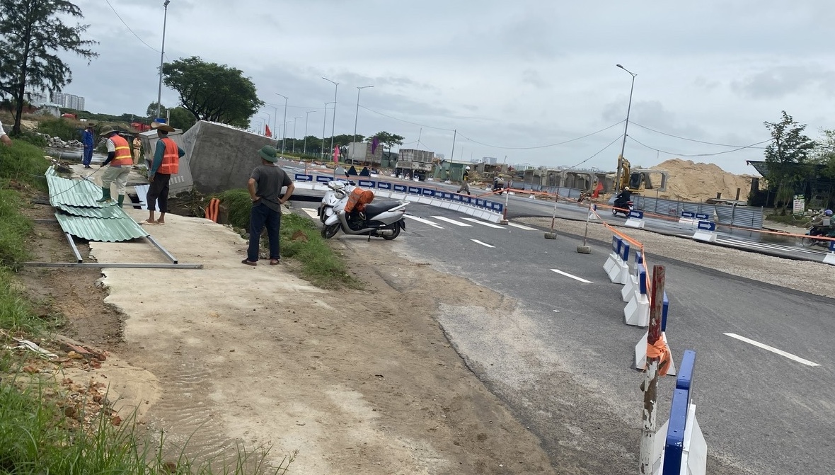Đơn vị cũng đang triển khai biện pháp vuốt nối tạm mặt đường qua dải phân cách để các phương tiện lưu thông thuận lợi.